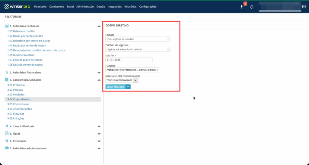 O Relatório de Corpo Diretivo (3.04 – Corpo Diretivo) recebeu melhorias importantes para facilitar o acompanhamento dos mandatos vigentes e seus vencimentos.